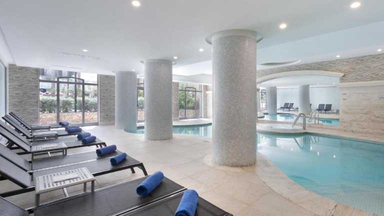 À flanc de colline, au nord de l’île, à 1 km de la plus grande plage de Malte. Deux piscines extérieures, SPA : hammam, sauna, salle de fitness et piscine intérieure chauffée avec bain à remous. Bar, restaurant, terrasse.