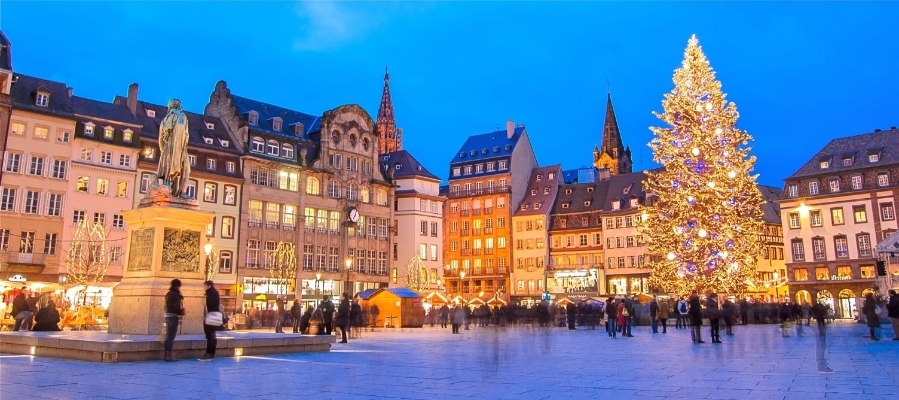 Transfert en car à Strasbourg. Temps libre au marché de Noël. Dîner libre. Embarquement à Strasbourg en fin de journée, installation dans les cabines. Cocktail de bienvenue, accueil par le commandant et présentation de l'équipage. Souper à bord, animation musicale par Rocco.