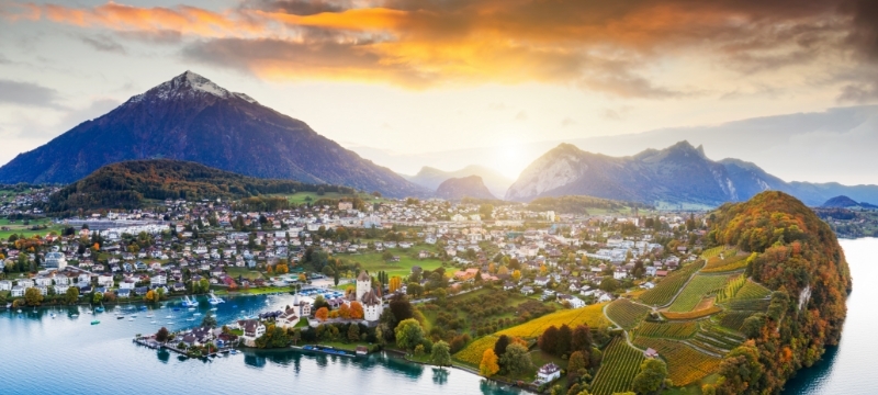 Départ en direction de Berne, Thoune. Visite guidée de cette ville historique située sur les rives du lac de Thoune et traversée par deux bras de l’Aar. Vous tomberez sous le charme de ses ponts en bois, ses écluses, son château blanc perché sur la colline du Schlossberg et ses célèbres trottoirs surélevés de l’Obere Hauptgasse. Dîner libre en ville. Route vers Interlaken, puis montée en funiculaire plus que centenaire sur les hauteurs du Harder Kulm (1322 m). Au sommet, petit temps libre au cœur d’un panorama montagneux et lacustre époustouflant. Retour en fin de journée à Thoune. Installation à l’hôtel, souper, soirée libre.