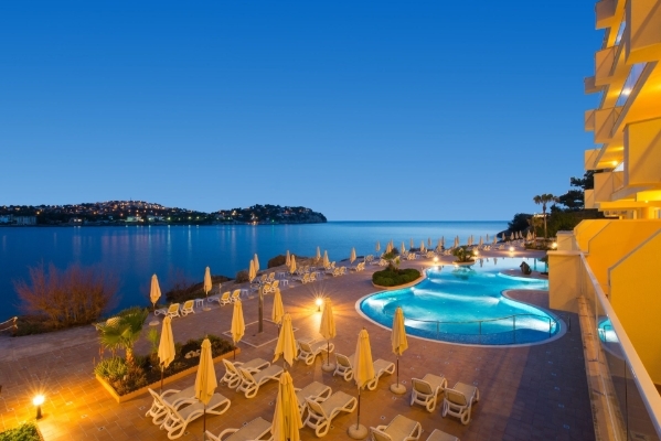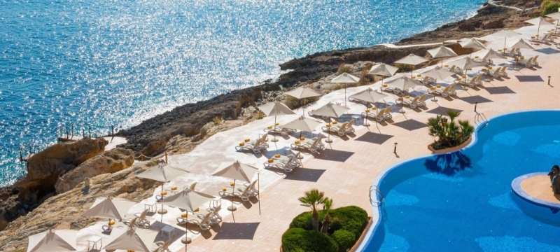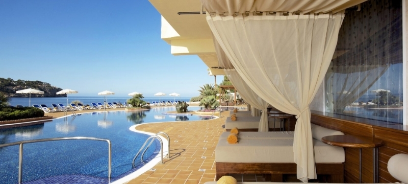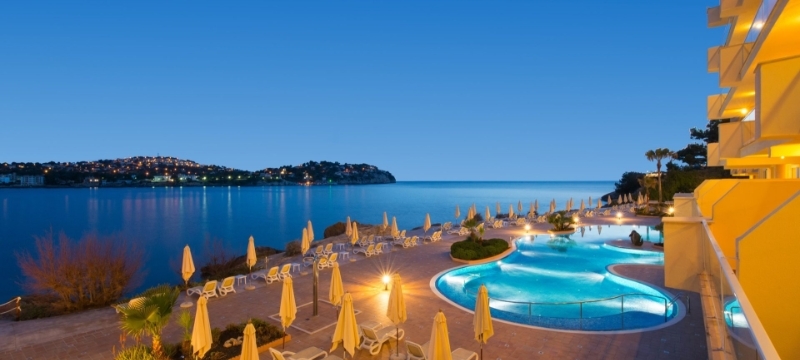 Situé dans un endroit calme face à la mer, l’hôtel Jardín Del Sol Suites est particulièrement apprécié par les couples. Il bénéficie d’un emplacement exceptionnel dominant la baie de Santa Ponsa. La plage de sable blanc et les commerces se trouvent à seulement 1 km. Réservé aux adultes dès 16 ans. Formule demi-pension et all inclusive en supplément.