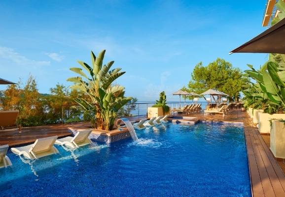 Piscine extérieure, terrasse avec chaises longues et parasols, accès à la mer par un ponton. Bar à cocktails et lunchs. Excellent restaurant La Calma avec grands buffets chauds et froids, restaurant japonais Teppanyaki avec show cooking (contre paiement). Terrasse pour un souper au crépuscule. Accessibilité aux personnes à mobilité réduite. Réception 24h/24. Ascenseurs et wifi gratuit.