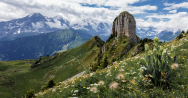 Départ pour Wilderswil, au cœur de l’Oberland bernois. Embarquez à bord du train à crémaillère historique qui vous mènera jusqu’au splendide plateau de Schynige Platte. L’Eiger, le Mönch et la Jungfrau s’offrent à vous ! Un cliché parfait de notre Suisse. Visite gratuite du jardin botanique situé au sommet.